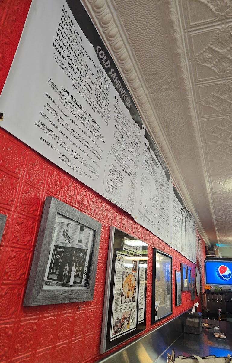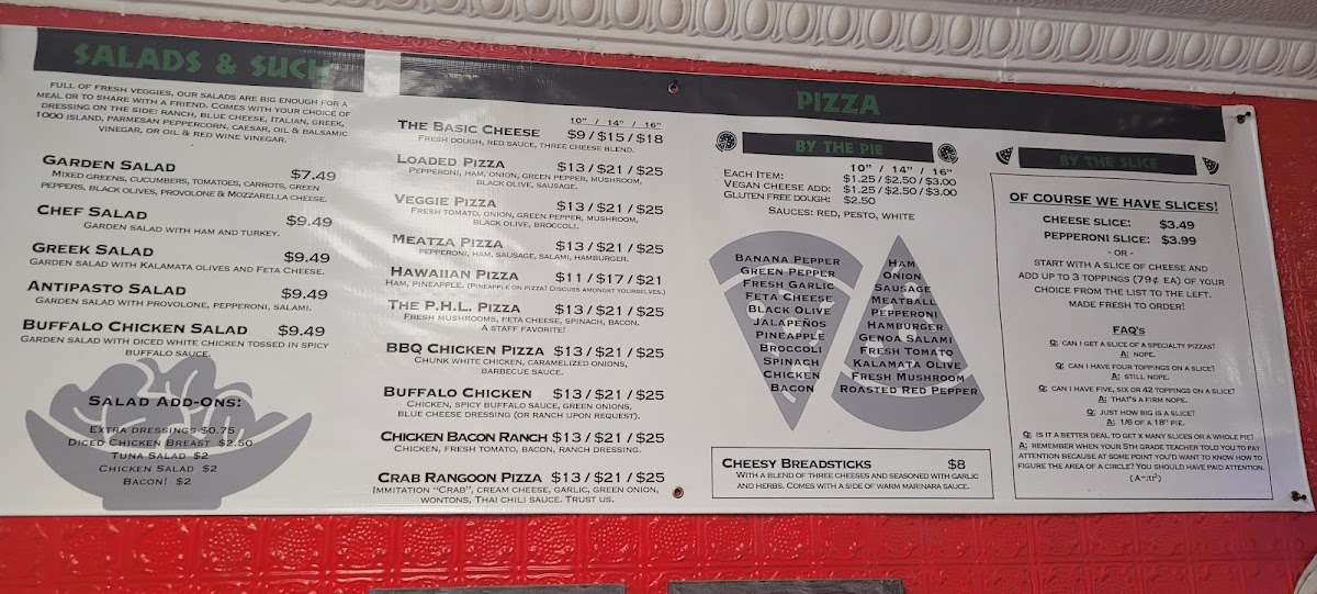 Three cheeses, onion, tomato, pickles, green peppers, olives, mayo.